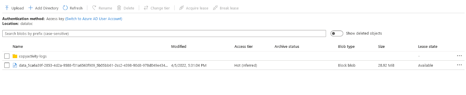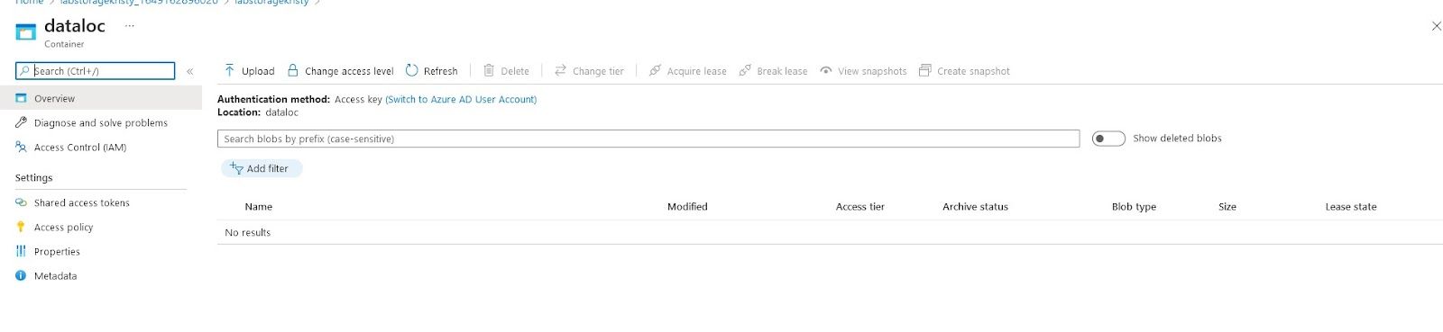 After that we need to create a container where our data will be stored, I created one named dataloc: