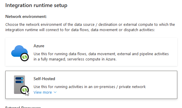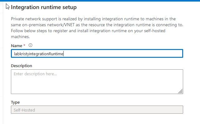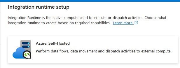 Now we’re gonna need to configure a self-hosted integration runtime.