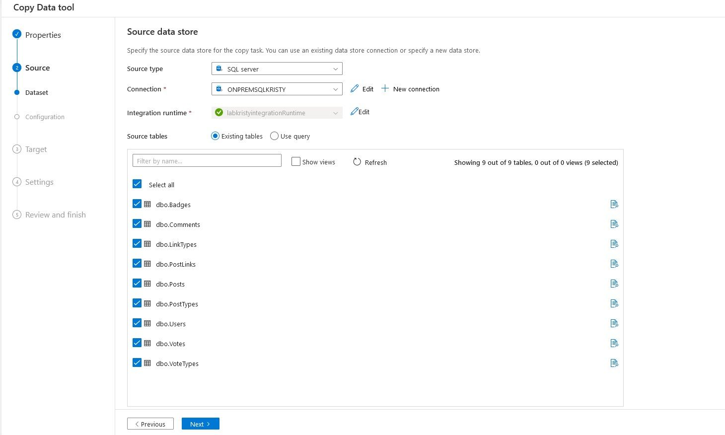 Once connected you’ll see a list of all tables in the database, you can choose multiple tables to export or create a query to export specific data, in this lab we’re gonna use a query to get a subset of records from the Posts table.
