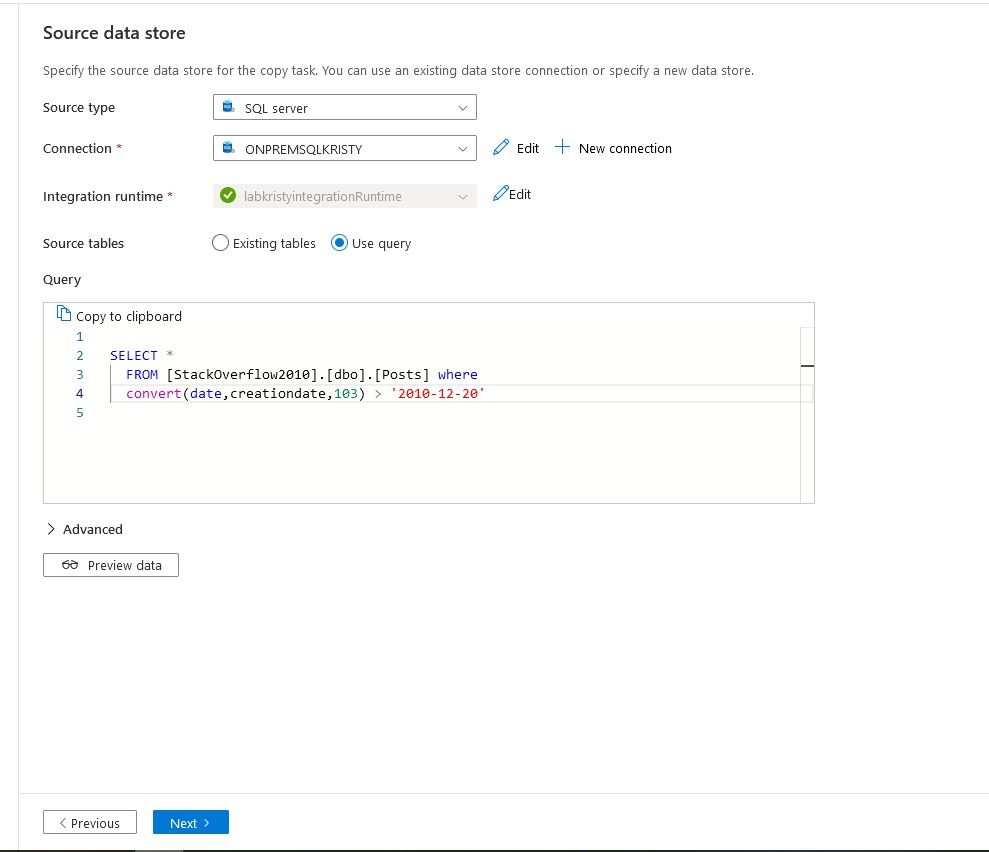 The idea for this lab was to create a simple BI environment in Azure using a local SQL Server sending data to a Data Lake through Azure Data Factory