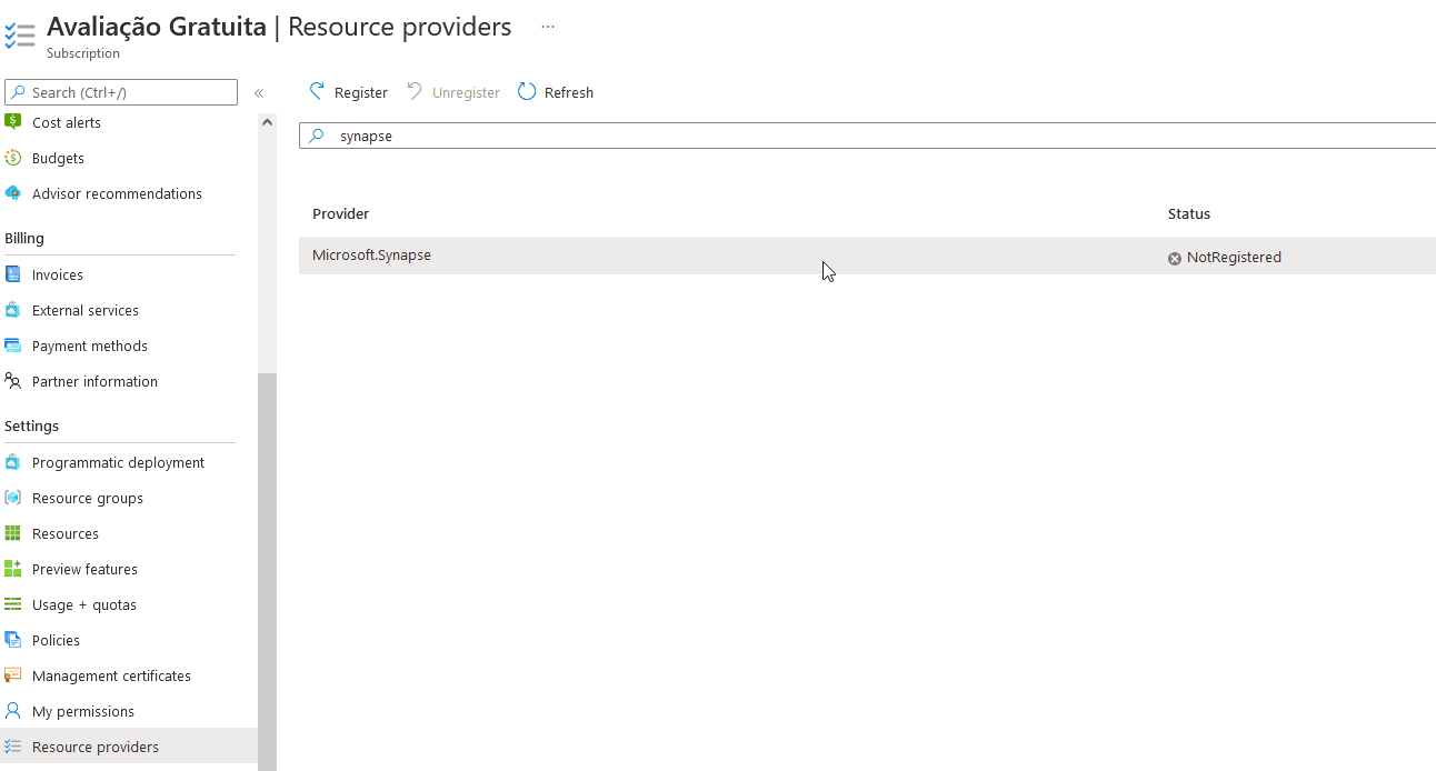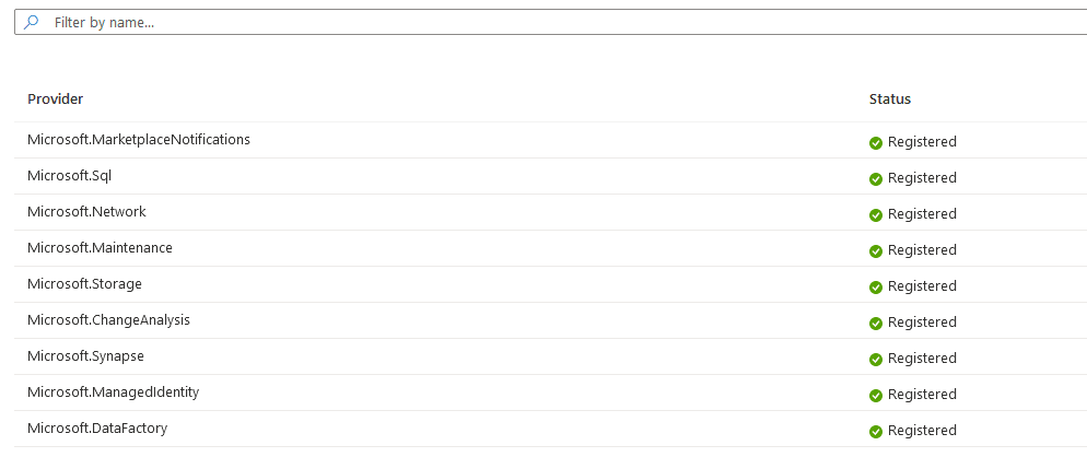 With our data saved, now we’ll create a Synapse Workspace to consume the parquet file, but first let’s add the resource provider for the synapse service into our subscription: