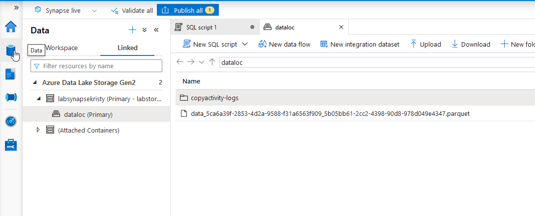 +++ From the many options available, I chose to use Synapse to work with the data stored.